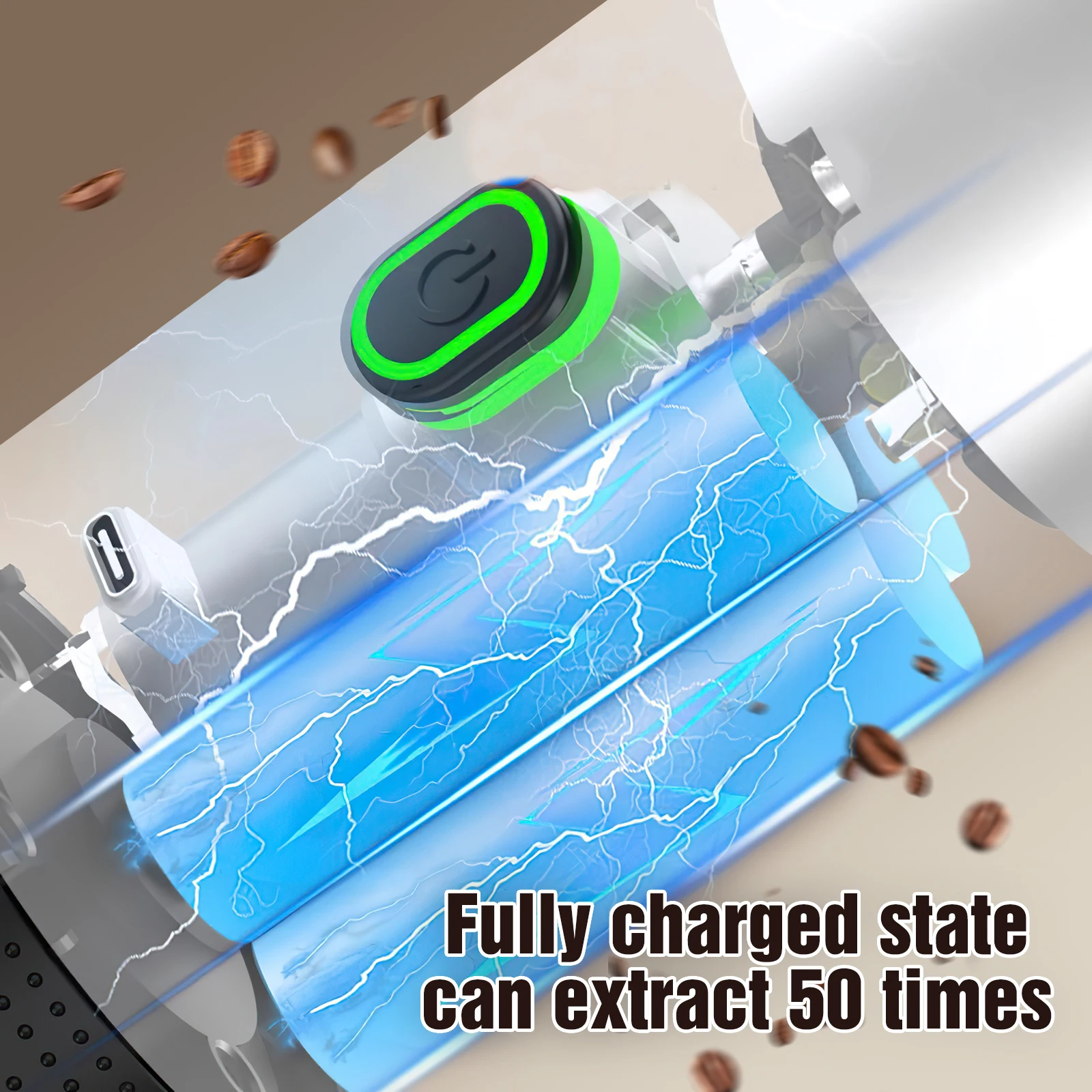 2. Extracción inteligente: La cafetera espresso portátil cuenta con una función de calentamiento inteligente, fácil de extraer. Presione dos veces el botón de encendido para activar la función de extracción. Mantenga presionado el botón de encendido para activar la función de extracción. Operación conveniente, ideal para agua potable fría y caliente.